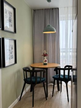 В квартире выполнен дизайнерский ремонт. Есть вся необходимая мебель и техника для комфортного проживания: стиральная машина, посудомоечная машина, кондиционер. Просторная лоджия.