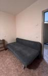 Солнечная сторона, комната разделена на две. Имеются два дивана, телевизор, холодильник, стиральная машинка полуавтомат