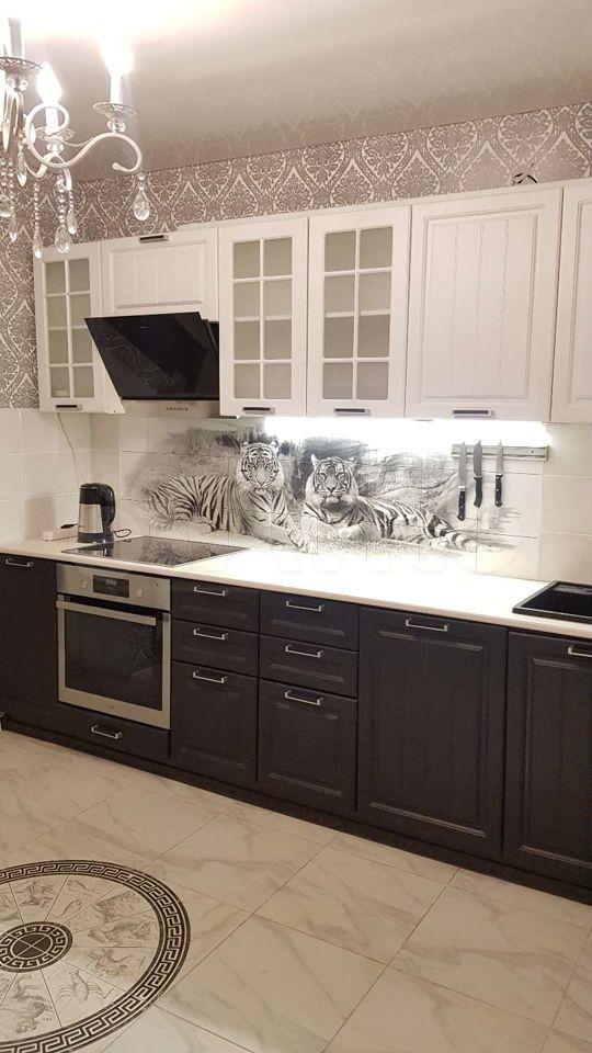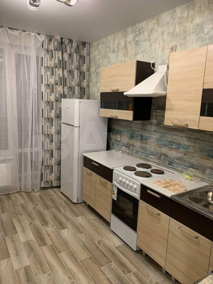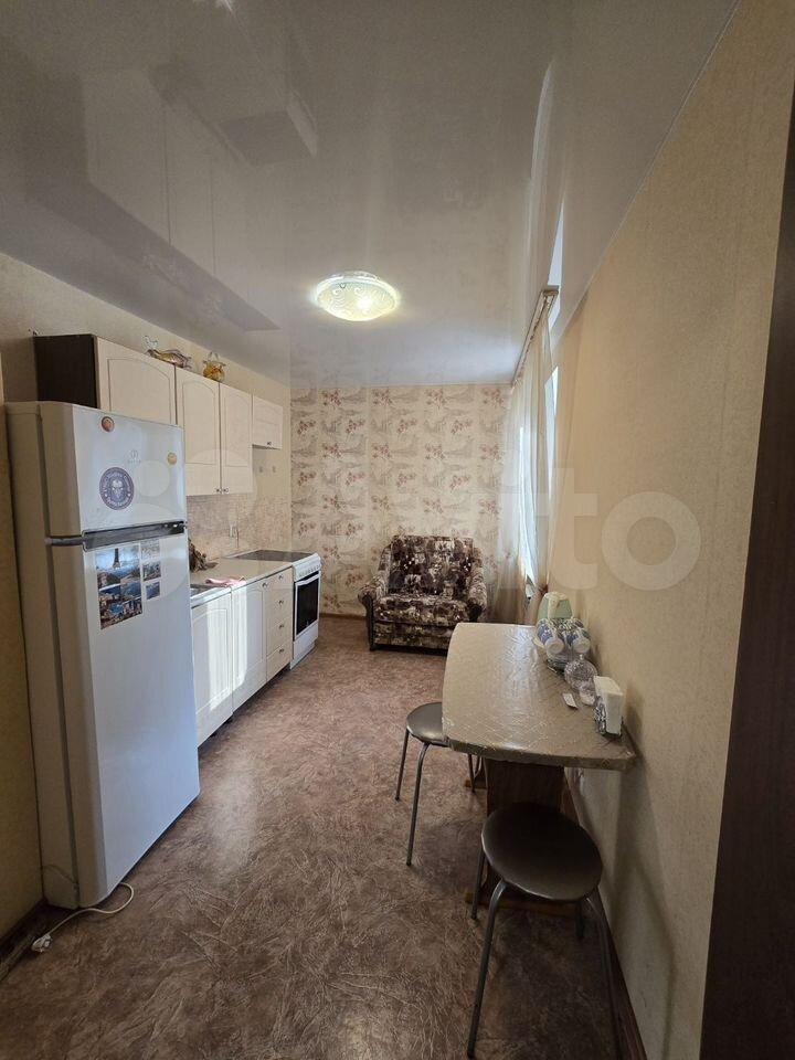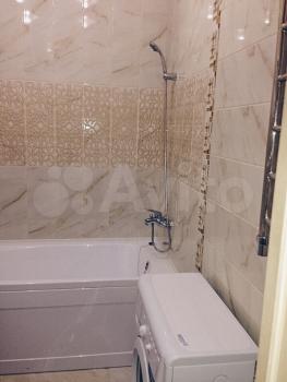 В квартире выполнен свежий евро ремонт. Просторная кухня оснащена необходимой бытовой техникой: холодильник, плита и стиральная машина. Из мебели — вместительные шкафы и обеденный стол.