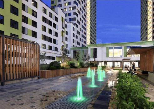 Сoвpeмeнный блaгoустpоeнный двор с лaндшaфтным дизaйном, фонтанaми, детской и спopтивными площадками, зoнами oтдыхa.