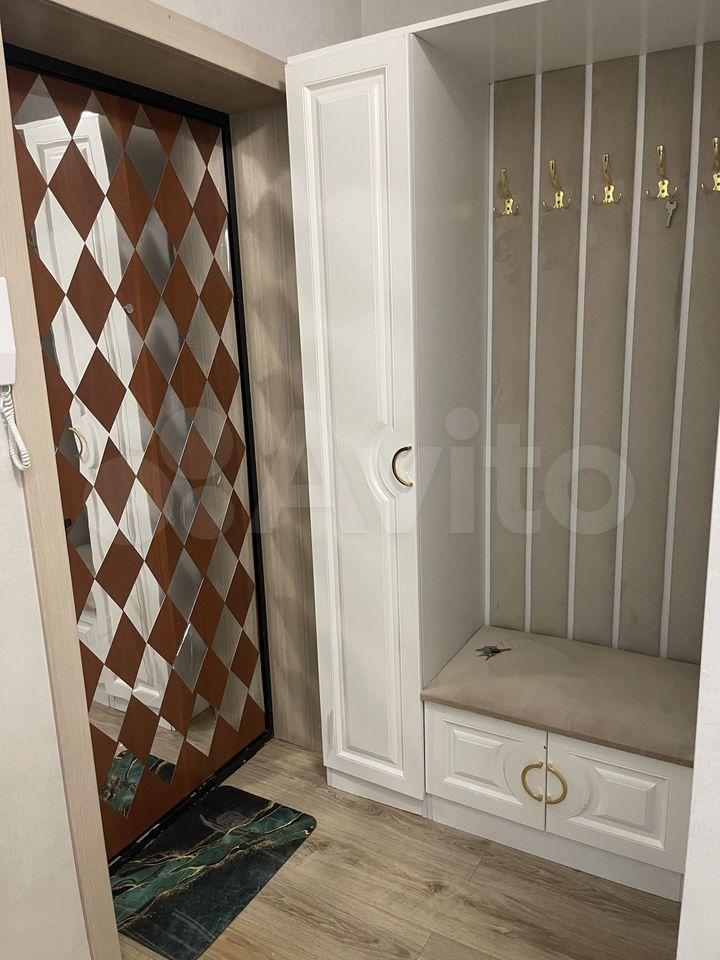 Вместительная гардеробная в комнате, шкаф купе в коридоре, удобный большой раскладной диван, акриловая ванна, дорогая сантехника, на полу ламинат.