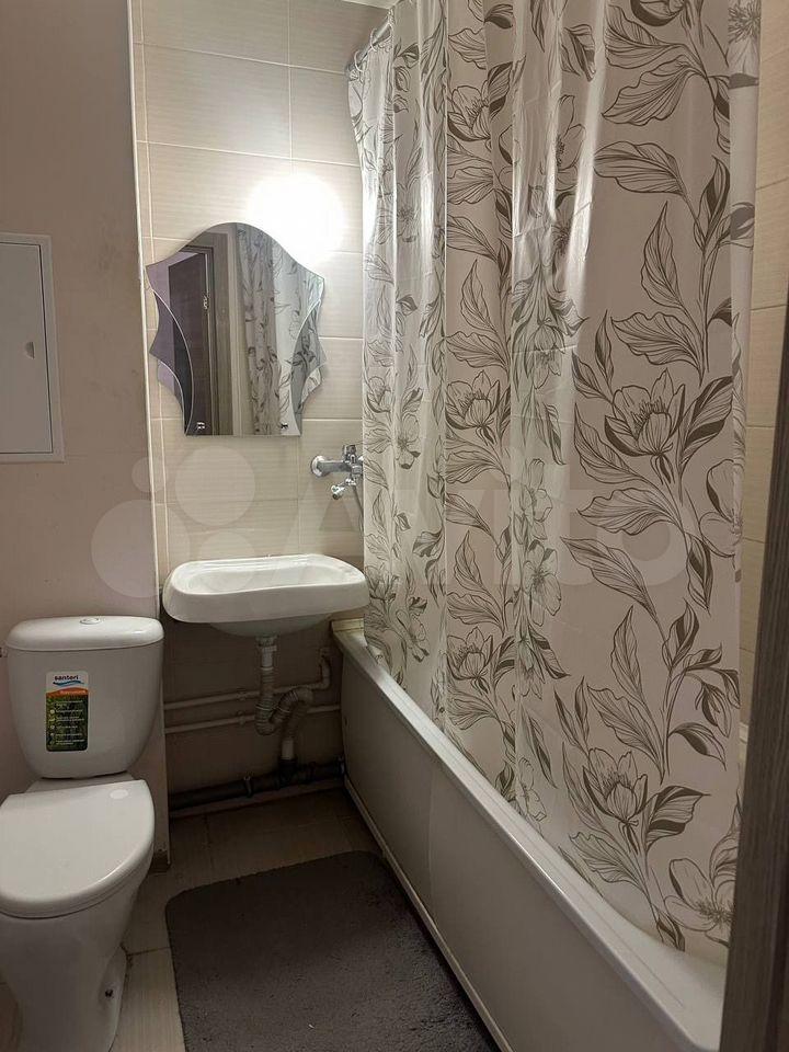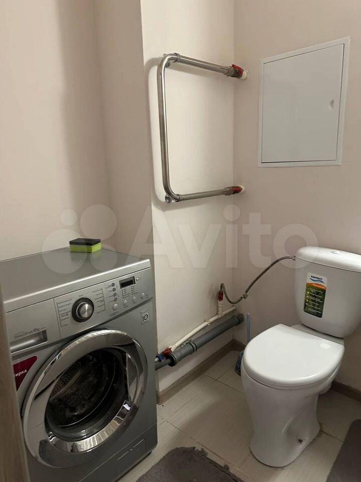 Кухня оснащена современной техникой: холодильник, варочная поверхность, духовой шкаф, вытяжка, микроволновая печь, мультиварка, электрический чайник. Санузел совмещённый, светлый, с ванной и стиральной машиной.