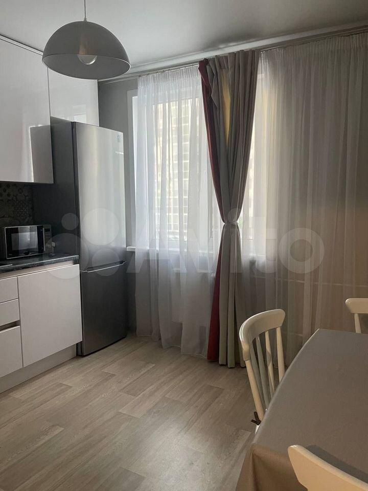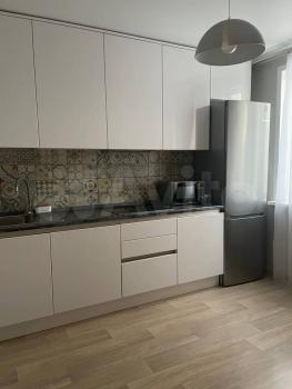 В квартире выполнен косметический ремонт. Просторная кухня оборудована современной техникой: холодильник, микроволновая печь и духовой шкаф. Из мебели — вместительные шкафы и обеденный стол.