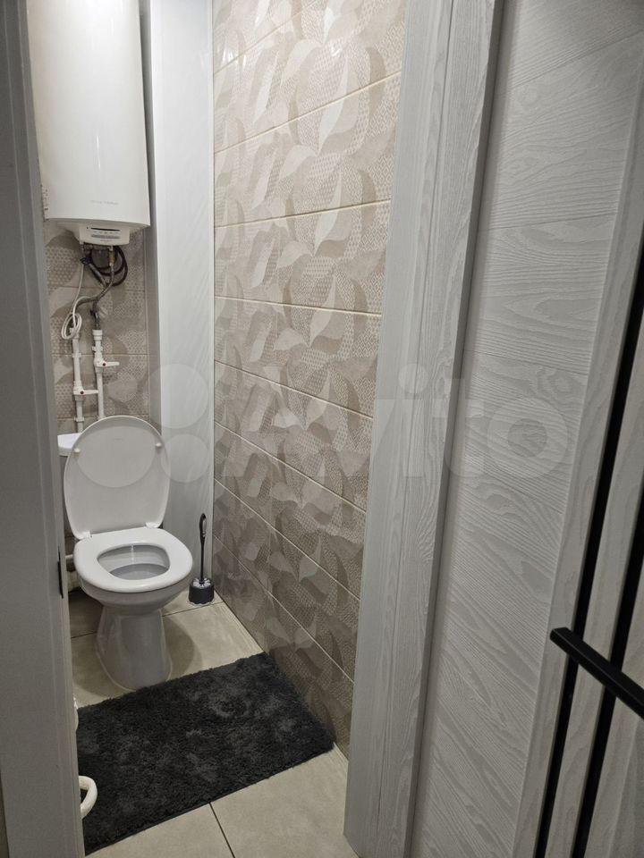 Ванная комната выполнена в светлых тонах и оснащена современной сантехникой. Раздельный санузел добавляет удобства.