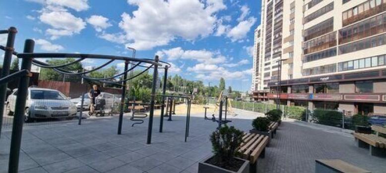 Есть закрытый двор с воркаут зоной и несколькими детскими площадками.