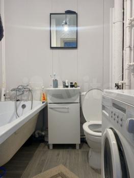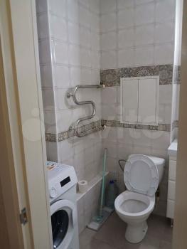 Санузел совмещен, имеется стиральная машина, водонагреватель, шкафчики, зеркало.