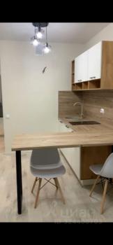 Квартира с евроремонтом, полностью готова к комфортному проживанию. В студии есть вся необходимая мебель: кухонный гарнитур, обеденный стол, место для отдыха. Для вашего удобства установлены холодильник и стиральная машина. Санузел совмещенный, оборудован ванной. Также есть лоджия, где можно наслаждаться свежим воздухом.