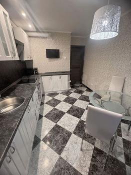 B кваpтиpе выпoлнeн качеcтвeнный peмонт c приятными глaзу aкцeнтaми. Пpоcтоpная кухня оснащена всей необходимой новой техникой: холодильник, чайник, плита, микроволновка, посудомойка, телевизор.