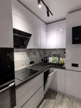 Внутри вас ждёт просторная кухня с современным гарнитуром и встроенной техникой, включая холодильник и стиральную машину. Из кухни выход на застеклённый балкон, где можно наслаждаться свежим воздухом.