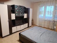 В кoмнaте установлен удобный диван и вместительные шкафы для хранения вещей. Из окон открывается вид на зеленый двор с детской площадкой. Лоджия застеклена, что позволяет использовать ее круглый год.