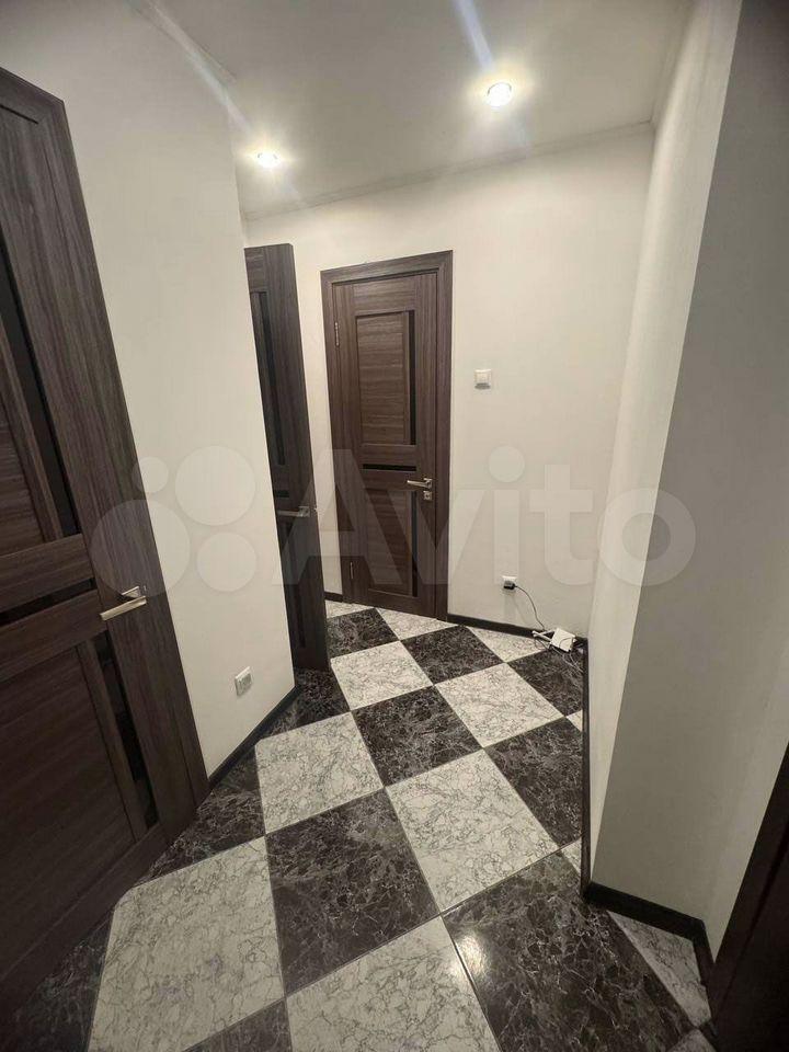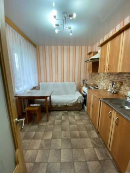 В квартире выполнен свежий ремонт. Просторная кухня оборудована всем необходимым: холодильник, плита, микроволновая печь и стиральная машина. Из мебели также имеются шкафы в прихожей.