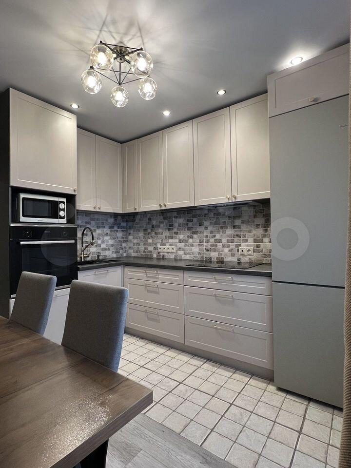 В квартире выполнен косметический ремонт. Просторная кухня оборудована современной техникой: холодильник, микроволновая печь и духовой шкаф. Из мебели — вместительные шкафы и обеденный стол.