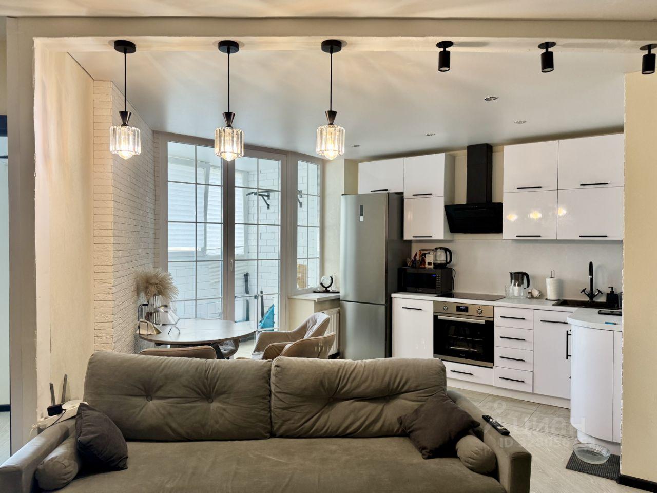 Кухня-гостиная позволяет комфортно принимать гостей и проводить время вместе.