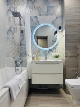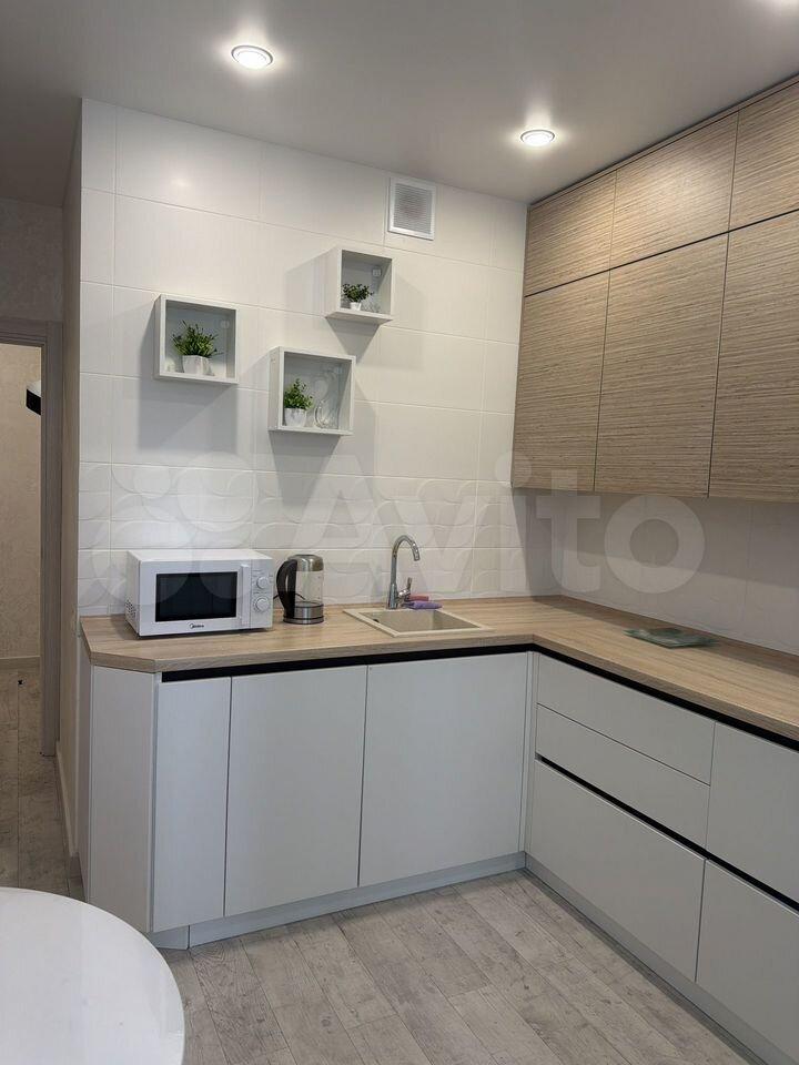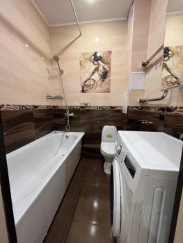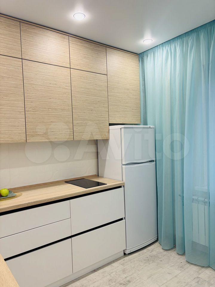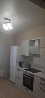 В квартире выполнен косметический ремонт. Просторная кухня оборудована необходимой техникой, включая холодильник и плиту. Санузел раздельный, оформлен в светлых тонах с современной сантехникой.