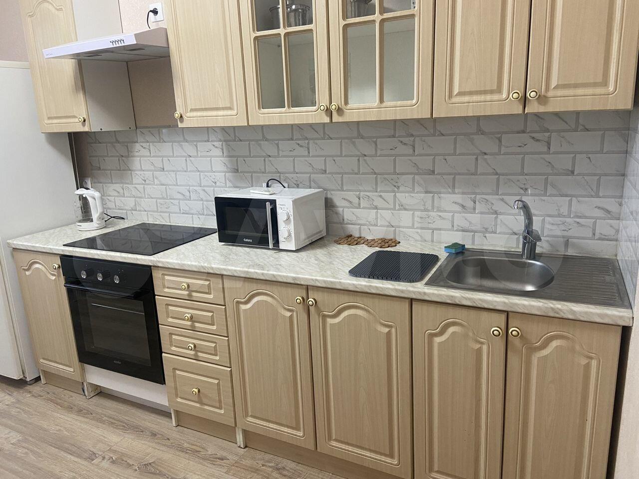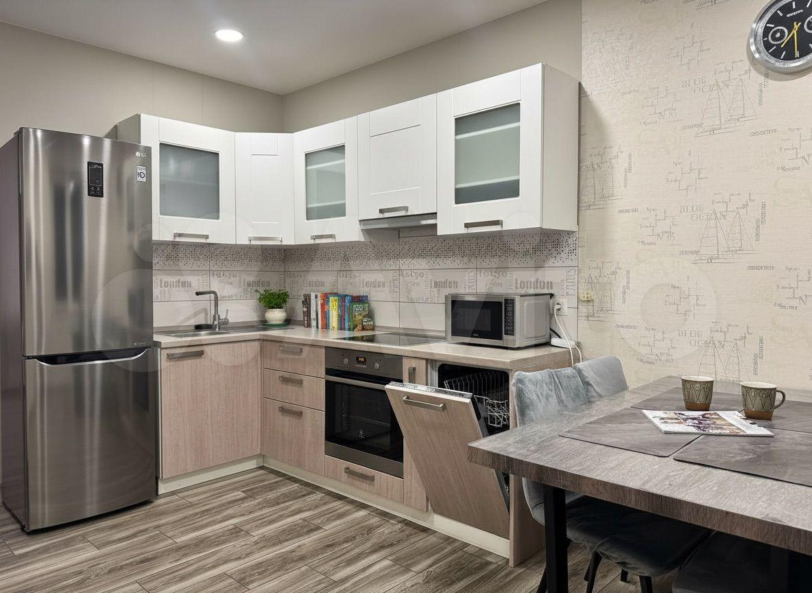 - Оборудованная кухня: варочная панель, микроволновая печь, духовой шкаф, вытяжка, двухкамерный холодильник, посудомоечная машина, электрический чайник, телевизор, кондиционер, посуда;