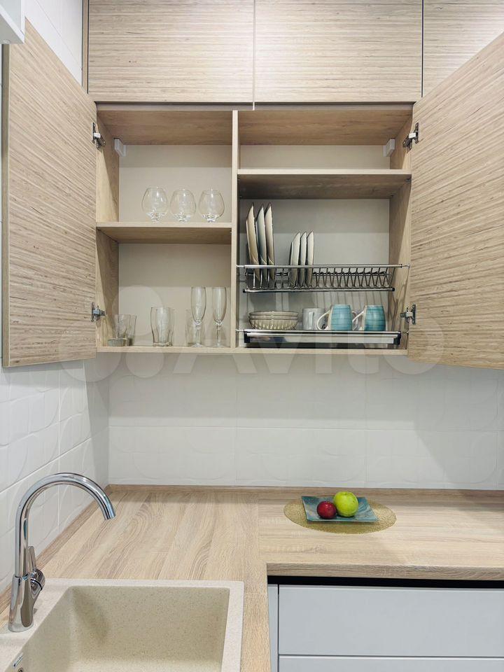 Из техники: стиральная машина, посудомоечная машина, варочная панель, вытяжка, духовой шкаф, электрический чайник, микроволновая печь, холодильник, сплит-система, приставка для телевизора, проведен интернет.
