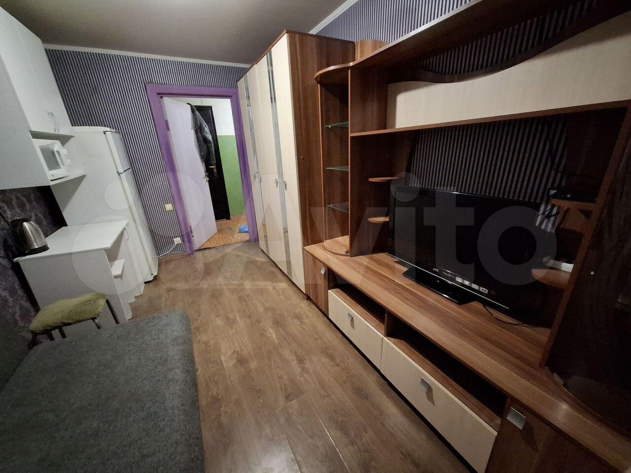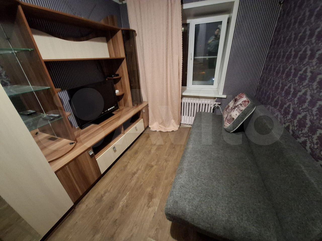 В комнате установлен удобный диван и вместительные шкафы для хранения вещей. Из окон открывается вид на зеленый двор с детской площадкой.Санузел совмещенный, оснащен всем необходимым для комфортного проживания. В подъезде есть пассажирский и грузовой лифты, а также подземная парковка.